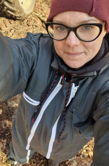 Depuis toute petite, j'ai appris à prendre soins des miens. En commençant par mes proches, c'est tout naturellement que je me suis tournée ensuite vers des études d'infirmière. Depuis 2012, j'exerce mon métier à temps plein tout en rêvant secrètement depuis trèèèès longtemps d'avoir un petit bout de terre, produire mon alimentation, tout en étant entourée de nos amis les bêtes. Et oui... bien que personne de ma famille ne soit agriculteur, j'ai grandis avec des grands-parents et parents qui mettent un point d'honneur au vivant, au naturel et au savoir faire : bricolage, jardinage, cuisiner....etc, mais aussi à aspirer à des valeurs de simplicité et d'humilité. A notre rencontre en 2022, entre Nicolas et moi....ça a été comme une évidence ! Nous aspirons aux mêmes envies, aux même rêves tout en partageant des valeurs communes! Nicolas s'amuse même à dire que j'avais bien plus de documentations sur la création d'une ferme, que lui au départ du projet... car oui, j'étais déjà bien renseignée mais je n'avais jamais osé franchir le cap de m'orienter vers l'agricole ! J'ai finalement franchis le pas, car ce projet n'est pas juste un projet professionnel mais un projet de vie et d'avenir ! Tout en continuant de travailler, j'ai passé mon BPREA en enseignement à distance de Juin 2024 à Août 2025. Je me suis formée à l'élevage caprin, à la transformation laitière et à l'apiculture, en allant en stage durant mes congés, les samedis...etc. Je potassais mes cours les soirs et les week-ends.... J'ai du mon diplôme du premier coup ! J'en suis pas peu fière ! Je vais rejoindre progressivement l'aventure de "La Ferme Tschamber" et mettre en place petit à petit différents ateliers.
