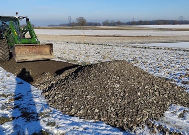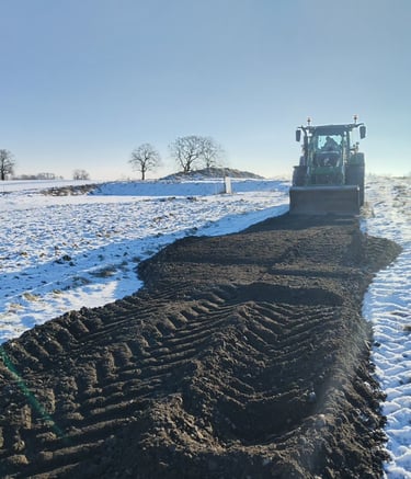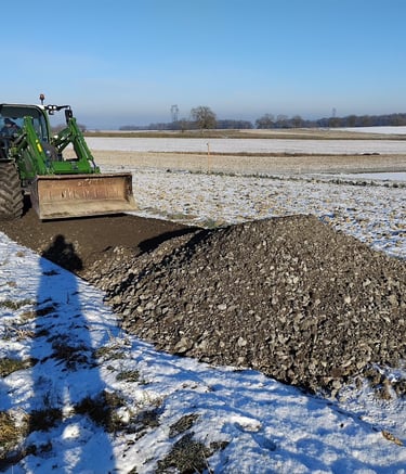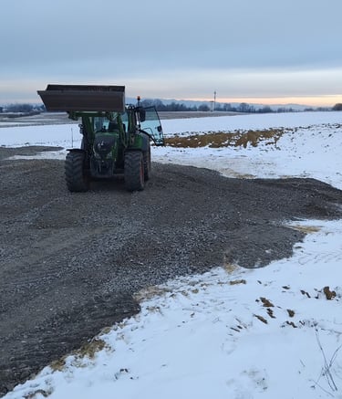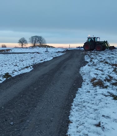 Vu que tout le projet ce trouve en plein milieu des champs, il faut un accès correct pour les engins de chantier, les maçons et les engins de manutention pour monter le hangar agricole.