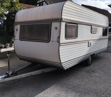 Un grand enfant dans sa caravane