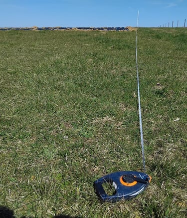 Pour créer une zone de cultures sur un pré, il faut déjà la coucher sur un plan, mesurer, et la placer sur le terrain avec un peu de triangulation et de maths, pour que l'ensemble de l'exploitation ressemble a quelque chose de cohérant vu du ciel !