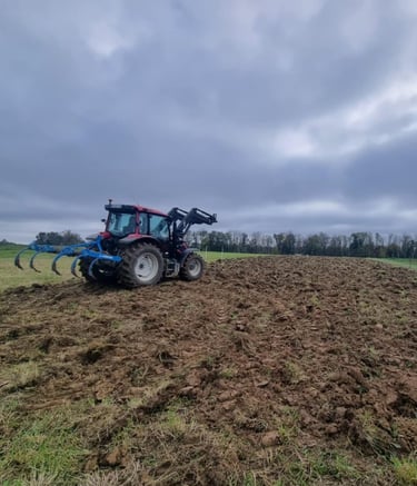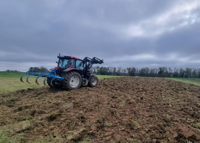 Tracteur équipé d'une sous soleuse pour travailler le sol sans retourné les horizons de terre