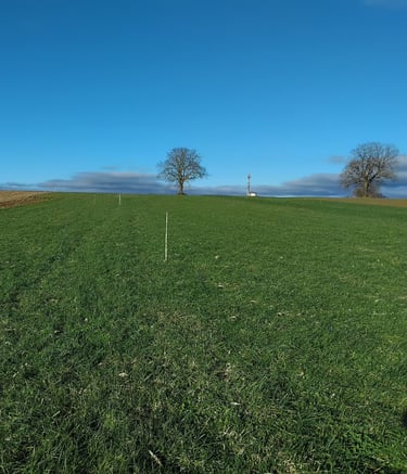 L'exploitation agricole est répartie sur plusieurs champs. il y a 3 bloc principaux, qui permettent de faire des rotation de cultures.