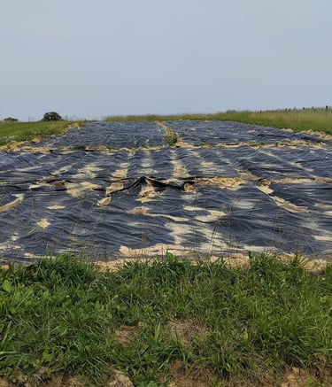 Etape 1 : Retirer la bâche qui évitait la repousse d'herbe