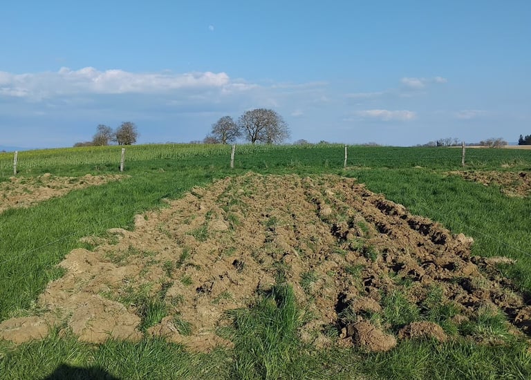 Dégâts sur une prairie qui sert pour les moutons