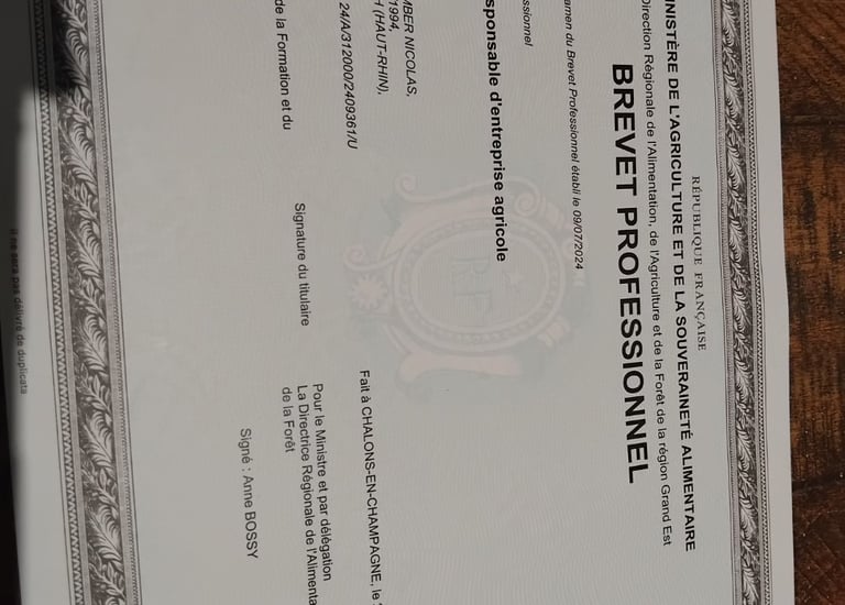 J'ai enfin en main propre ce BPREA : Brevet Professionnel de Responsable d'Entreprise Agricole