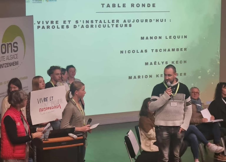 J'ai eu l'occasion au seins de l'amphithéâtre du lycée agricole de Rouffach, de parler des difficultés d'installation, aussi bien sur le point de vue administratif, économique ou social, en présence de multiples acteurs, comme la chambre d'agriculture, la DDT, et autres organismes, mais aussi de jeunes étudiants, qui souhaite emprunter cette voie.