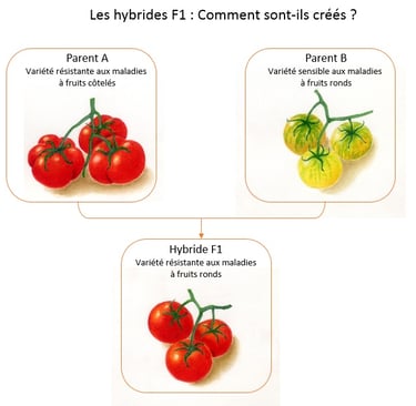 Semences hybrides F1 : Issues du croisement de deux lignées pures. Très performantes en première génération (F1), mais non reproductibles. Utilisées pour leur vigueur, homogénéité et rendement.
